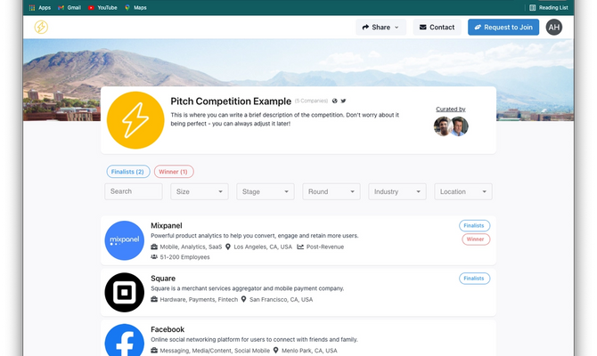 Market the event, receive pitches, share with judges, and help founders get the exposure they need - all with one tool.