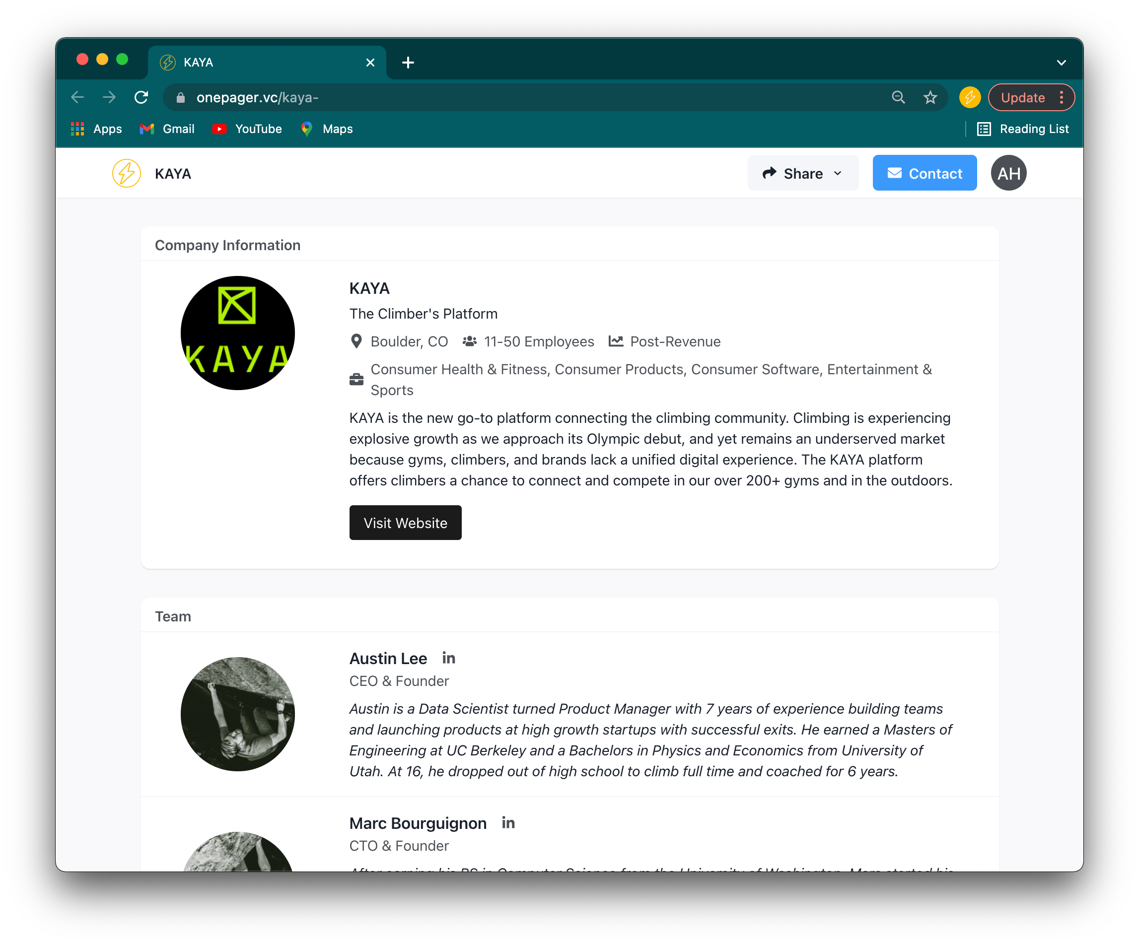 Austin and Kaya were some of our earliest users and went on to raise from firms like Tribe Capital and the climber Alex Honnold (worth a google).