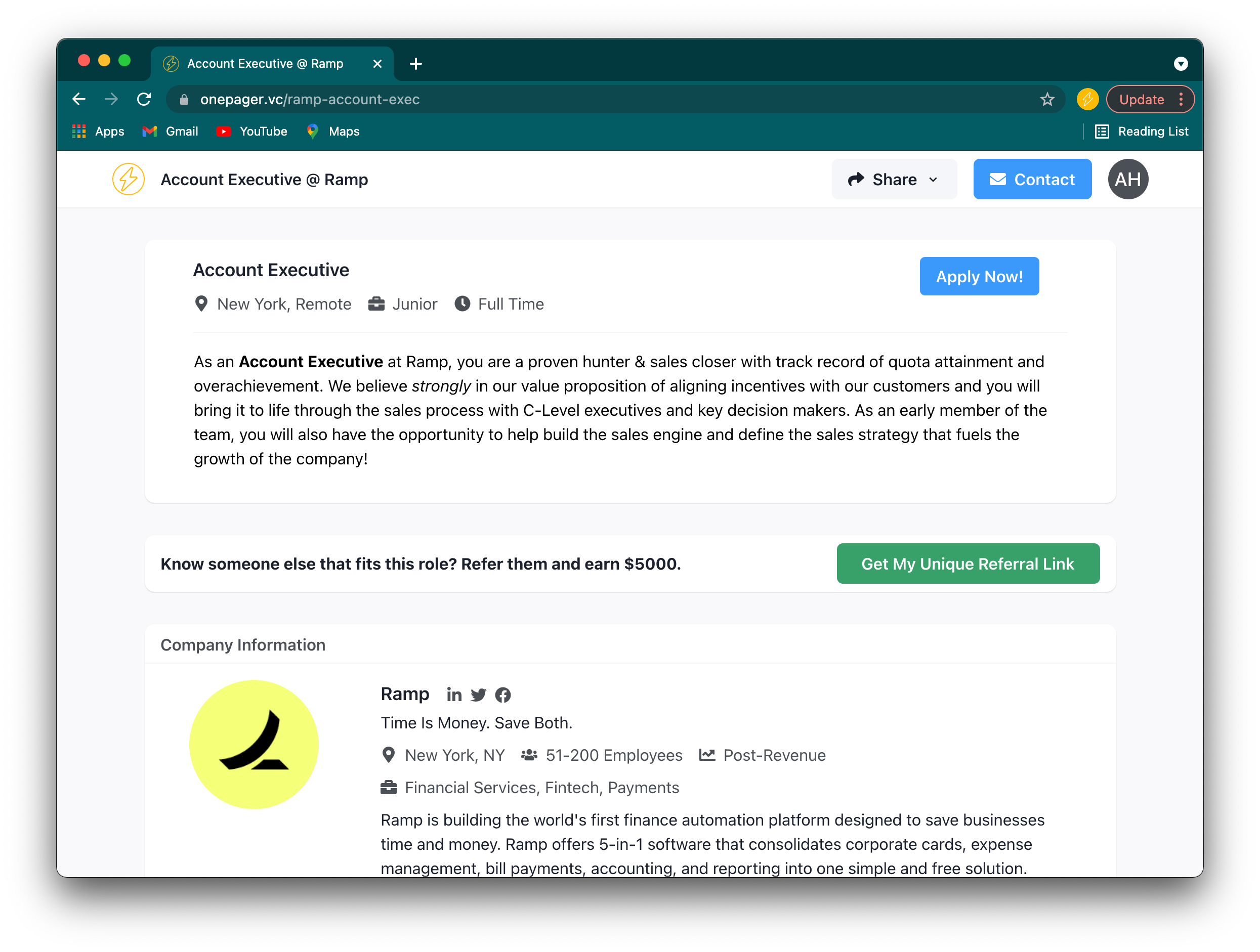 Our goal with OnePager for recruiting is to enable companies to leverage the communities around them to accelerate their hiring process. From here we will also be building out workflows to automate referral confirmations and payouts to make the whole process as smooth as possible for hiring companies, referrers, and candidates.