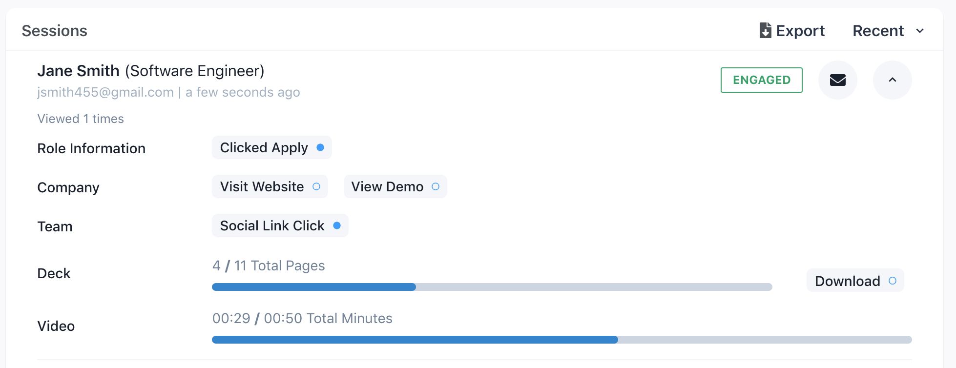Finally, from a recruiter’s perspective, recruiting OnePagers are complete with all of the best access control and analytics features from fundraising OnePagers. Track user engagement with the page and their interaction with relevant links (did they click apply, but not complete an application?). Choose if you’d like users to be able to view anonymously, require emails before viewing, or require access to be granted before viewing. Control your recruitment on the platforms you alreach use, and review engagement in the app (or export for our Pro users!).